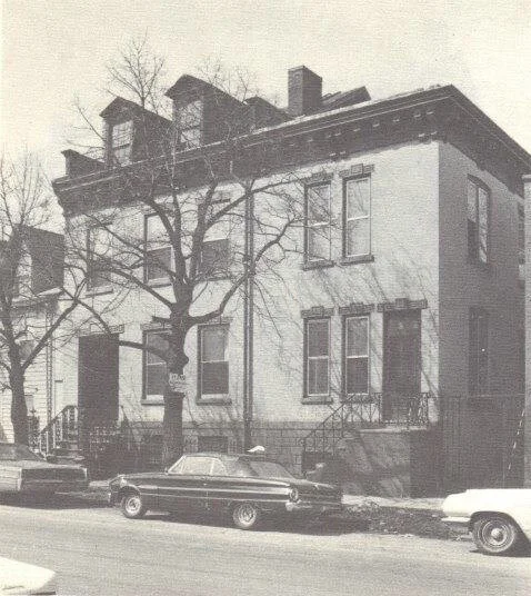 A brick dwelling has been located on this site since at least 1809, when the original lease between Levinus Lansing and James Winchell was drawn up. The present building was constructed at least two decades later. It was associated with a number of prominent Lansingburgh businessmen during its early history. Prior to 1834, the house was owned by Elisha Sanders, a merchant. From 1834 to 1839, it was owned by Oscard F. D. and Chauncey P. Ives, members of an important Lansingburgh family. Oscar Ives was a lawyer who owned a “line of Boats” between Lansingburgh and New York City. From 1842 to 1854 the property was owned by John S. Fake. In 1854 it was purchased by Edward Tracy, who owned a brewery as well as a number of malt houses along First Avenue. Tracy’s brewery was one of the largest in the area. The older section of the house retains many of its original exterior architectural elements including the two dormers, entrance stoop with iron railings, the Greek revival paneled window and door labels. The addition to the north was built during the late nineteenth century in a style which reflected the earlier building. A heavy bracketed cornice was added to both buildings at that time to connect them visually.