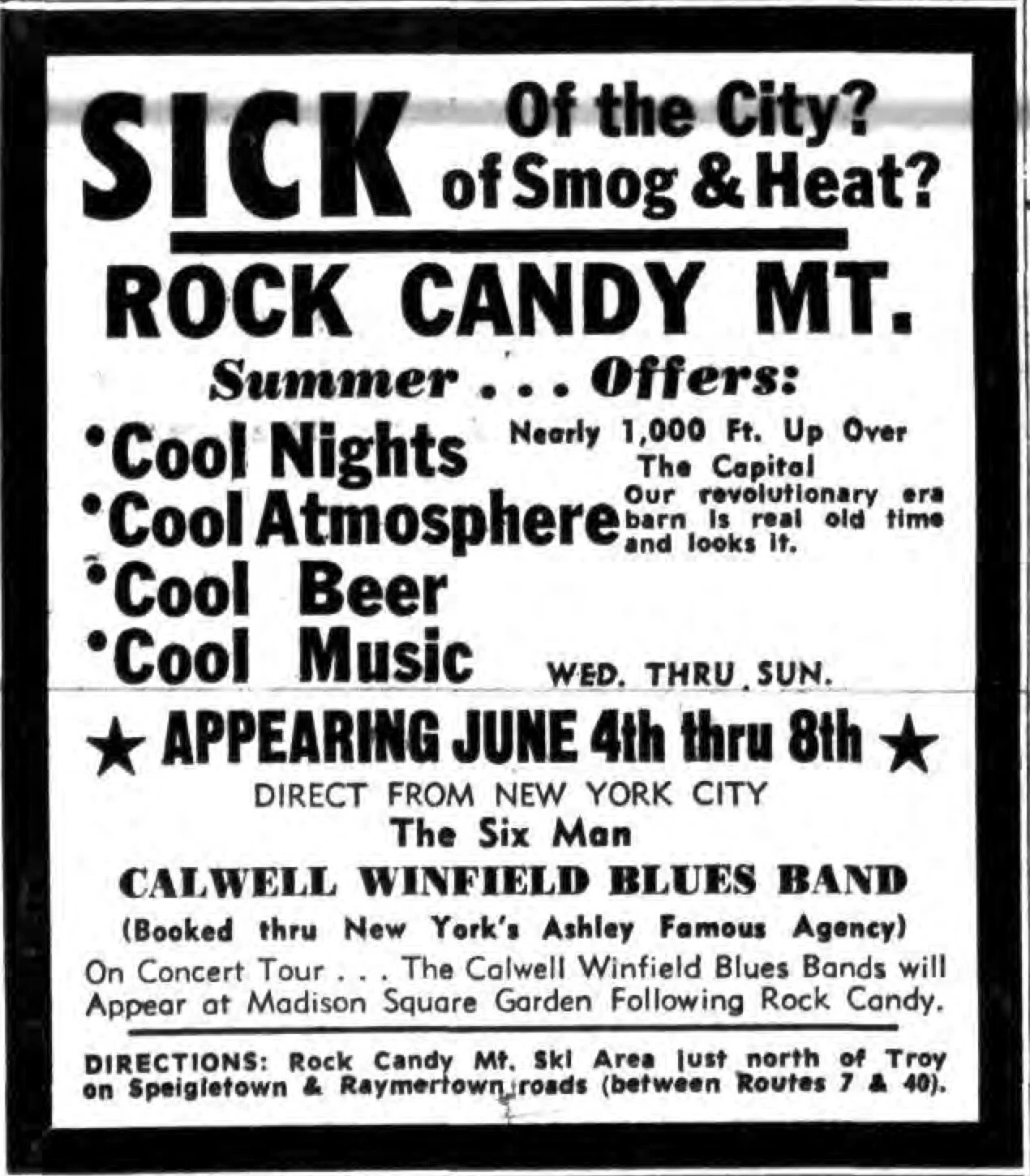 SICK Of the City? of Smog & Heat? ROCK CANDY MT. Times Record. May 31, 1969: 5 cols 1-2. (Advertisement)