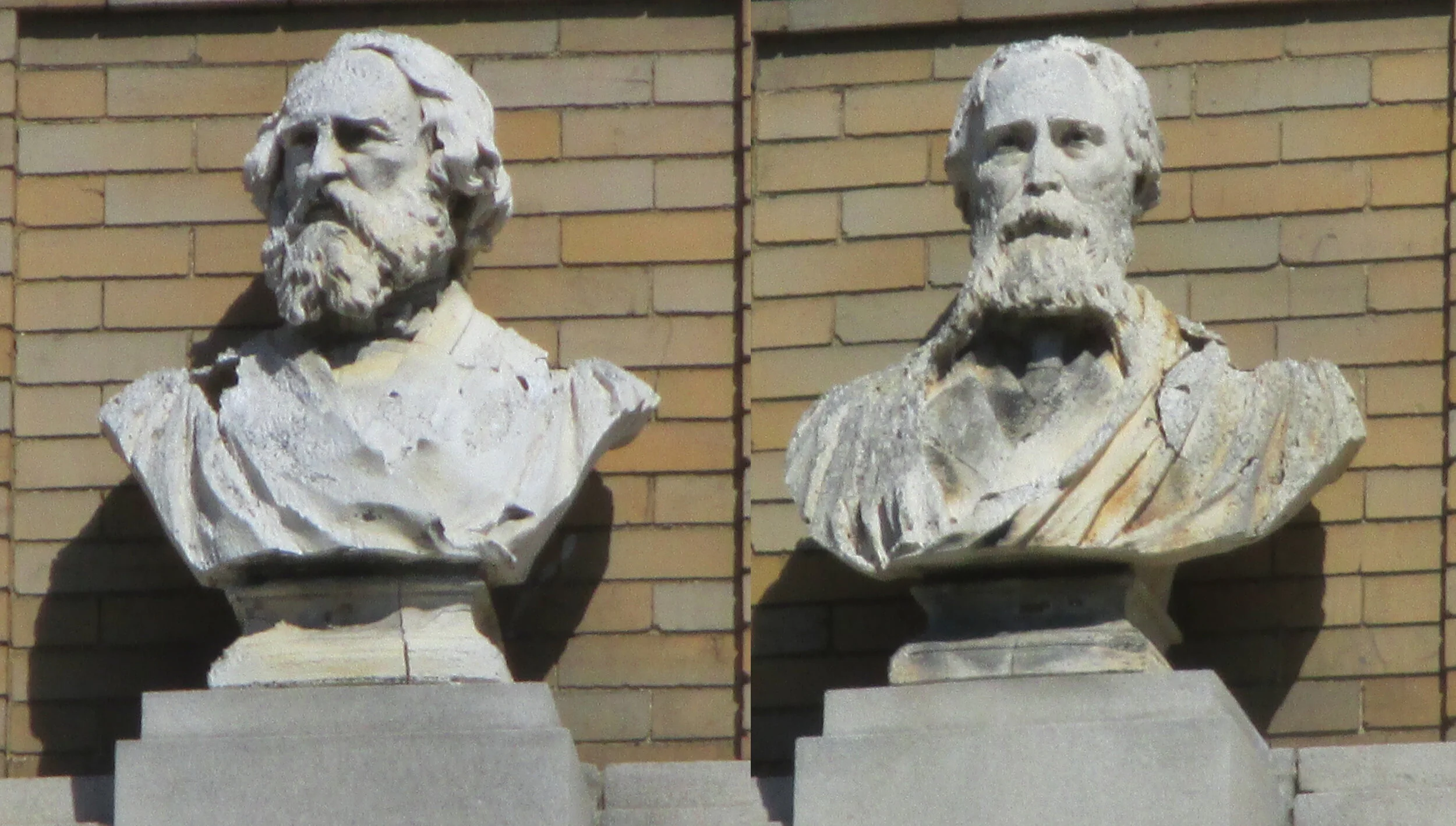 Busts on front of Lansingburgh Central School, cropped from photos by Kay DeRosa.