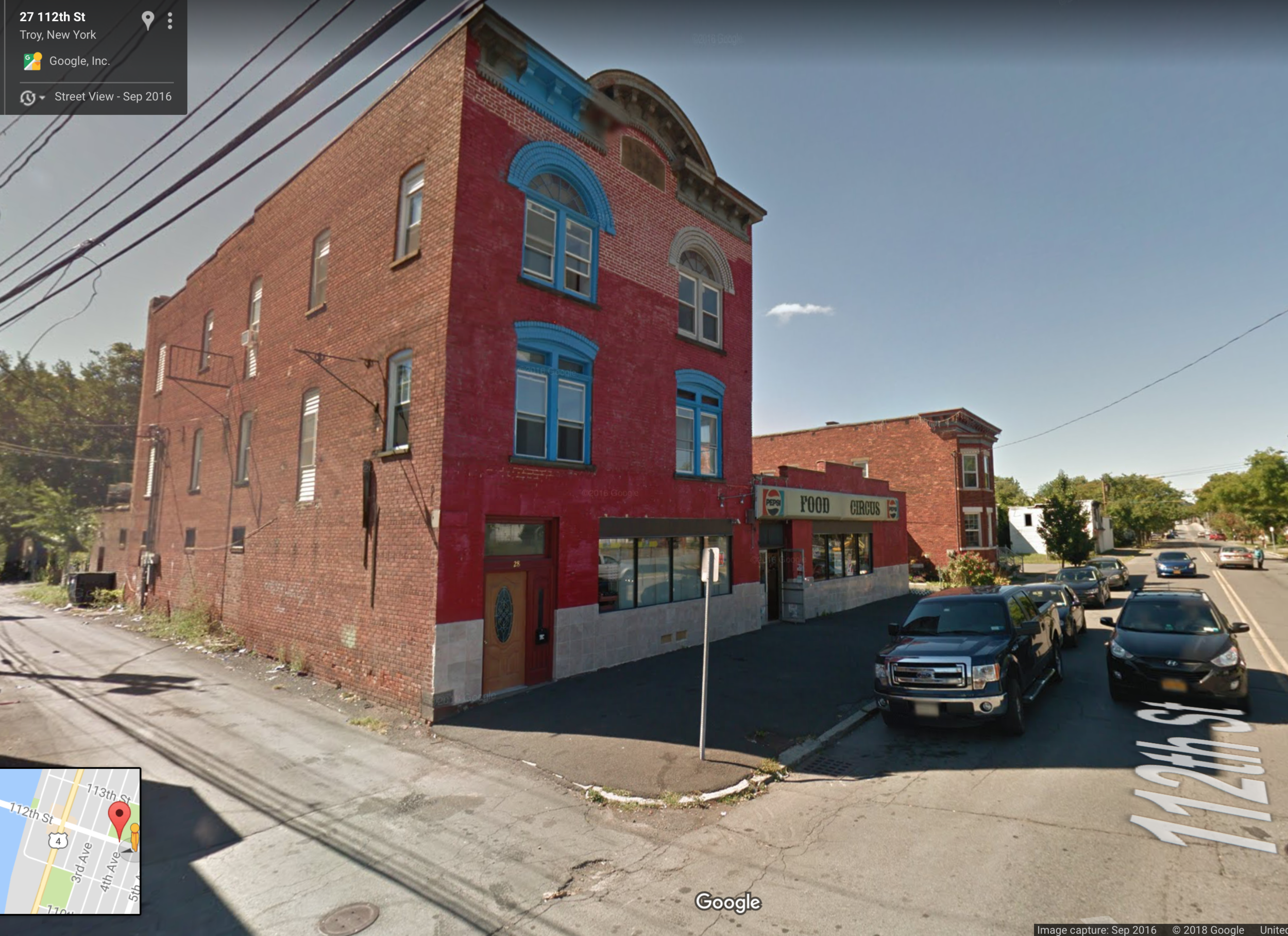 Former IOOF Hall, 21 112th Street. Google Street View. September 2016.