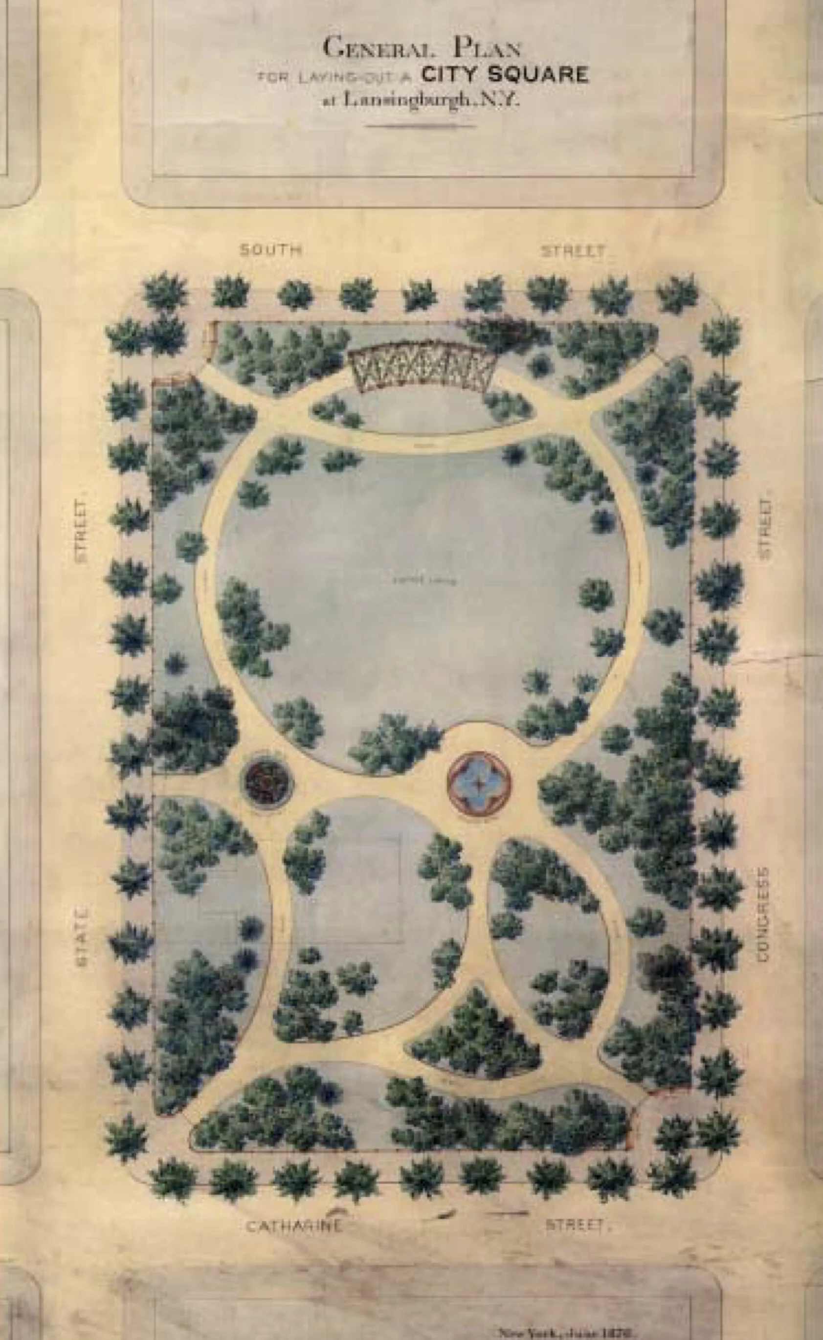 "General Plan for Laying Out a City Square at Lansingburgh, N. Y." by Jacob Weidenmann